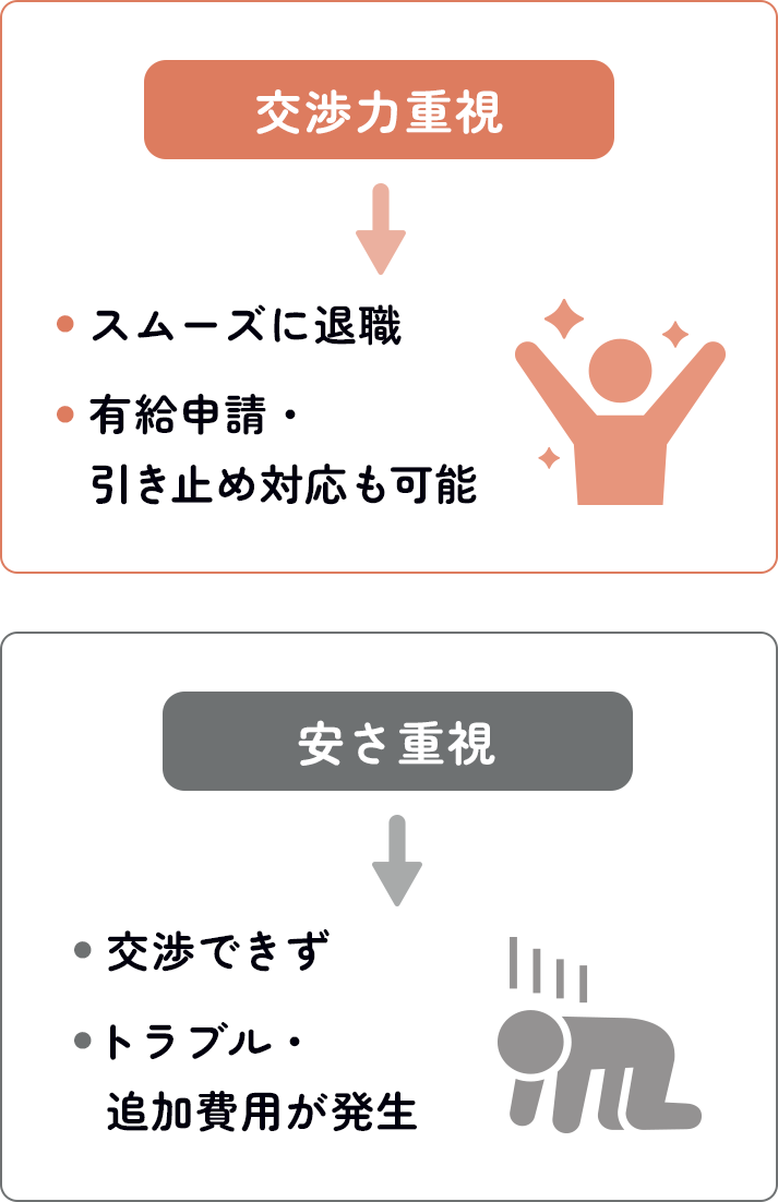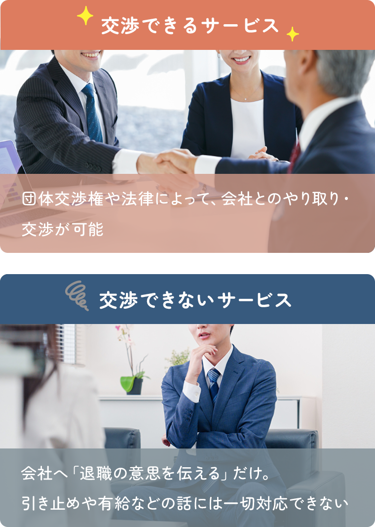退職代行には、「交渉できるサービス」と「交渉できないサービス」が存在します。