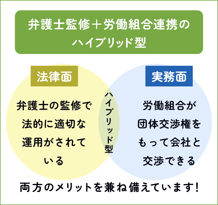 弁護士監修×労働組合のハイブリッド型なら、法的にも実務的にも安心して任せられます。