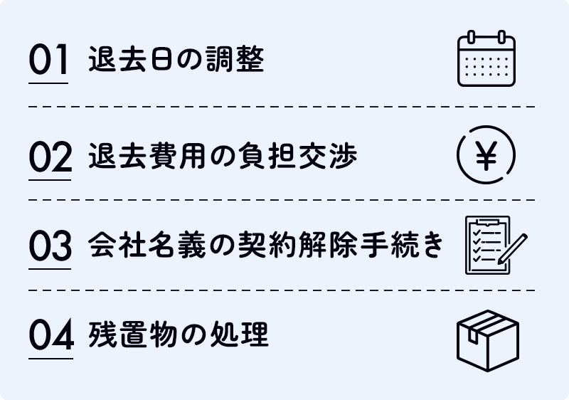 一方で、社宅・寮の退去手続きに対応しているサービスであれば、退職から住居の整理まで一貫してサポートしてくれるため、精神的・金銭的な負担が大きく軽減されます。